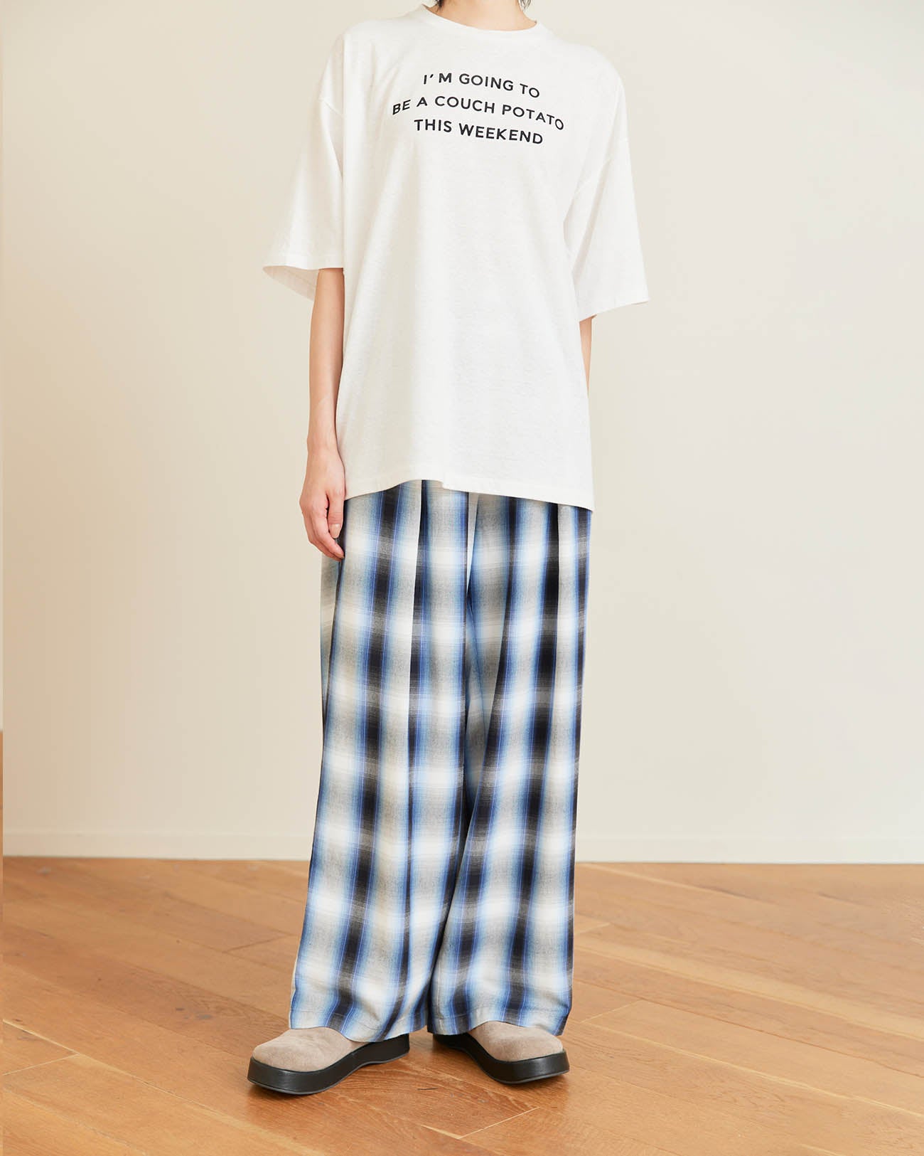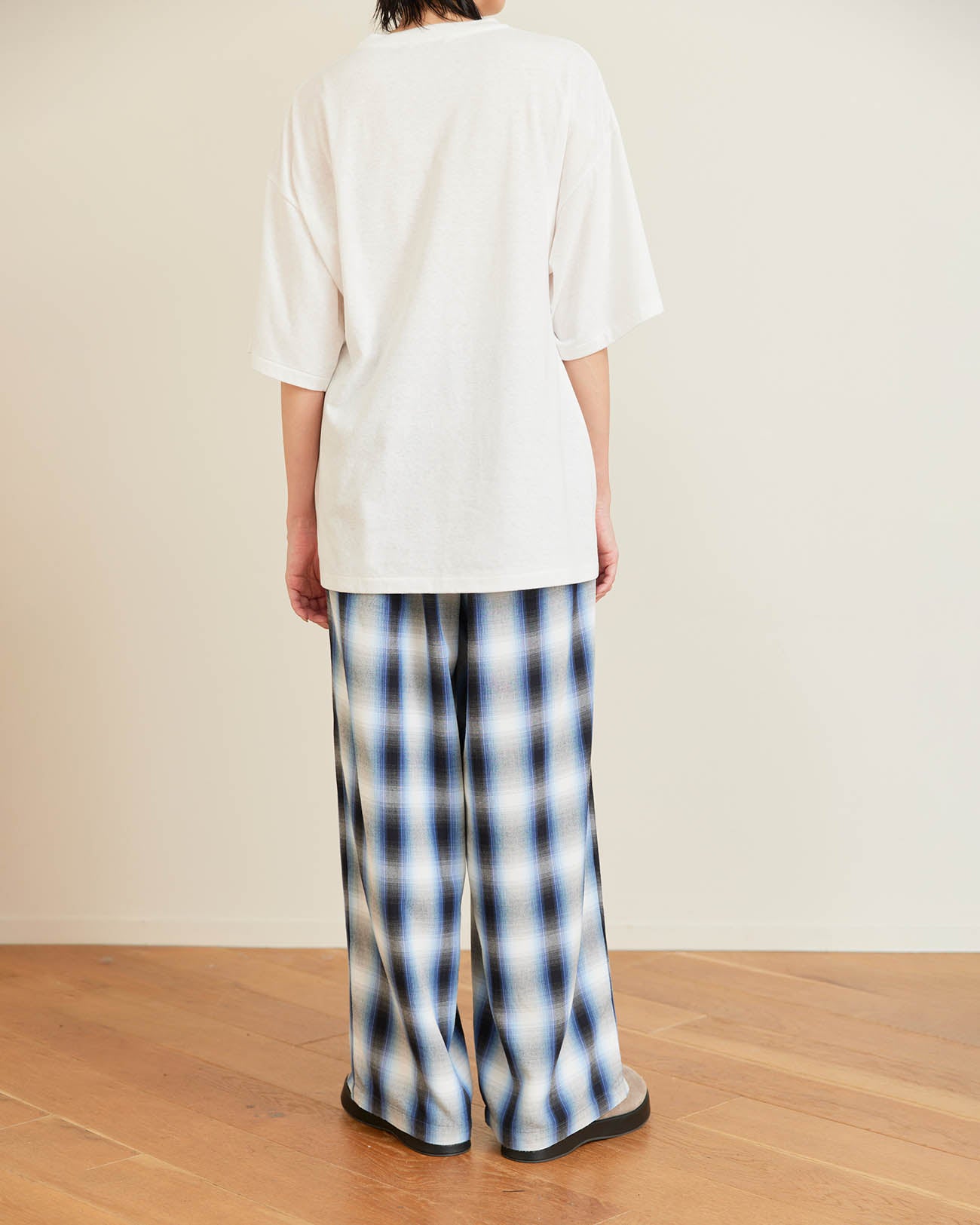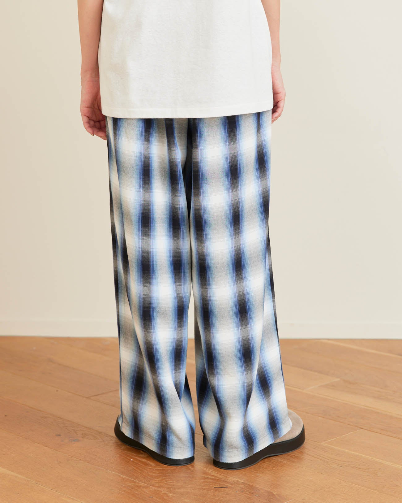 2.28(Sat.) 11:00 | Rayon ombre check gathered pants - blue